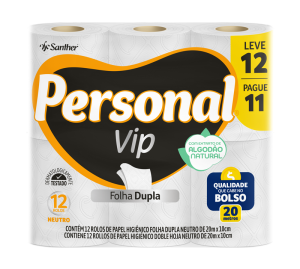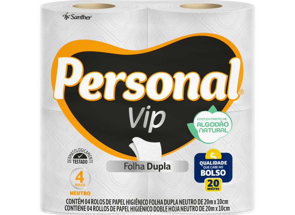 PERSONAL® VIP é o papel higiênico de 2 folhas com Extrato Natural de Algodão em duas camadas de fibras naturais que proporcionam uma textura suave, aliando maciez e toque de algodão, com a resistência das fibras, para um equilíbrio perfeito entre conforto e absorção