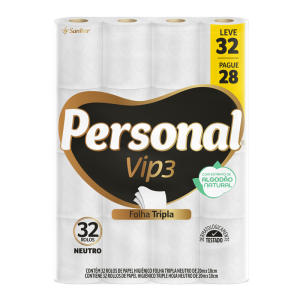 Chegou o novo PERSONAL® VIP3 o papel higiênico folha tripla com Extrato de Algodão Natural em três camadas de fibras naturais que proporcionam uma textura suave, associando a maciez e o toque como algodão com a resistência das fibras para um perfeito equilíbrio entre conforto e absorção