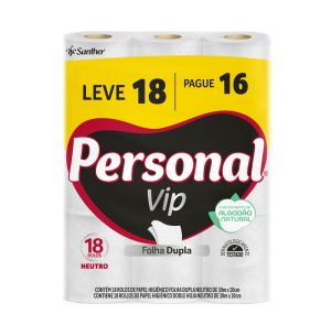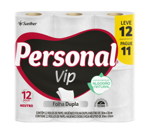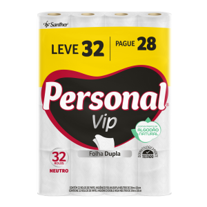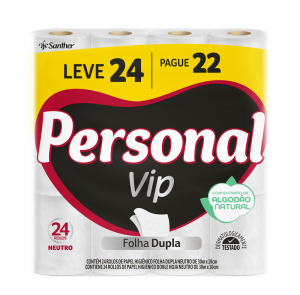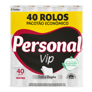 PERSONAL® VIP é o papel higiênico de 2 folhas com Extrato Natural de Algodão em duas camadas de fibras naturais que proporcionam uma textura suave, aliando maciez e toque de algodão, com a resistência das fibras, para um equilíbrio perfeito entre conforto e absorção